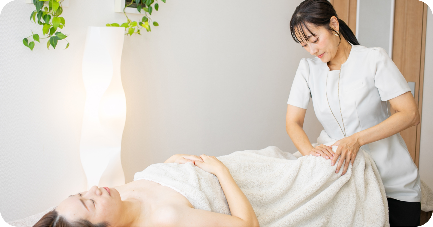この施術では、全身の筋膜から骨盤底筋群にアプローチして、 体の内側から生命力がみなぎる感覚を取り戻していただきます。